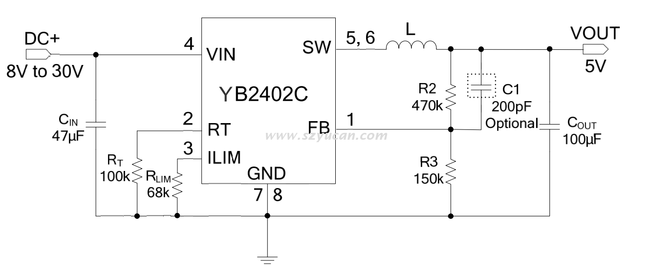 昱燦 YB2402C SOP-8 DC-DC同步降壓 30V 2.5A 限流可調(diào)