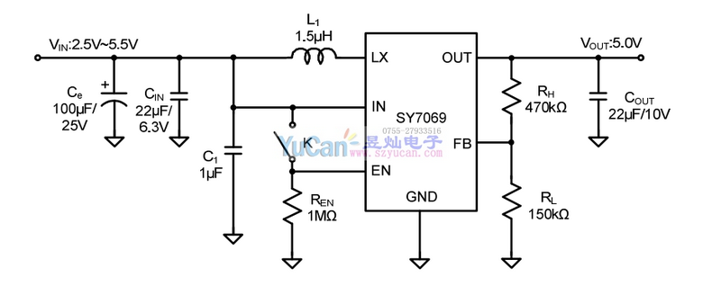 SY7069是一種高效率同步升壓轉(zhuǎn)換器,適用于單節(jié)鋰離子或鋰聚合物電池供電應(yīng)用。它可以轉(zhuǎn)換為2.5V輸入電壓為5.5V輸出電壓。主開關(guān)采用NMOS結(jié)構(gòu),同步開關(guān)采用PMOS結(jié)構(gòu)。SY7069可以在關(guān)機模式下斷開輸出和輸入。當(dāng)輸入電壓超過規(guī)定的輸出電壓時SY7069自動進(jìn)入旁路模式。